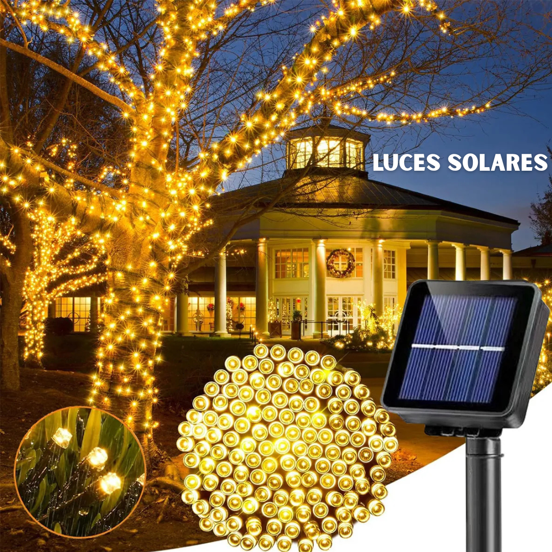 🎄LUCES NAVIDEÑAS:CARGA DE DIA Y SE ENCIENDE EN LA NOCHE 10 METROS✨