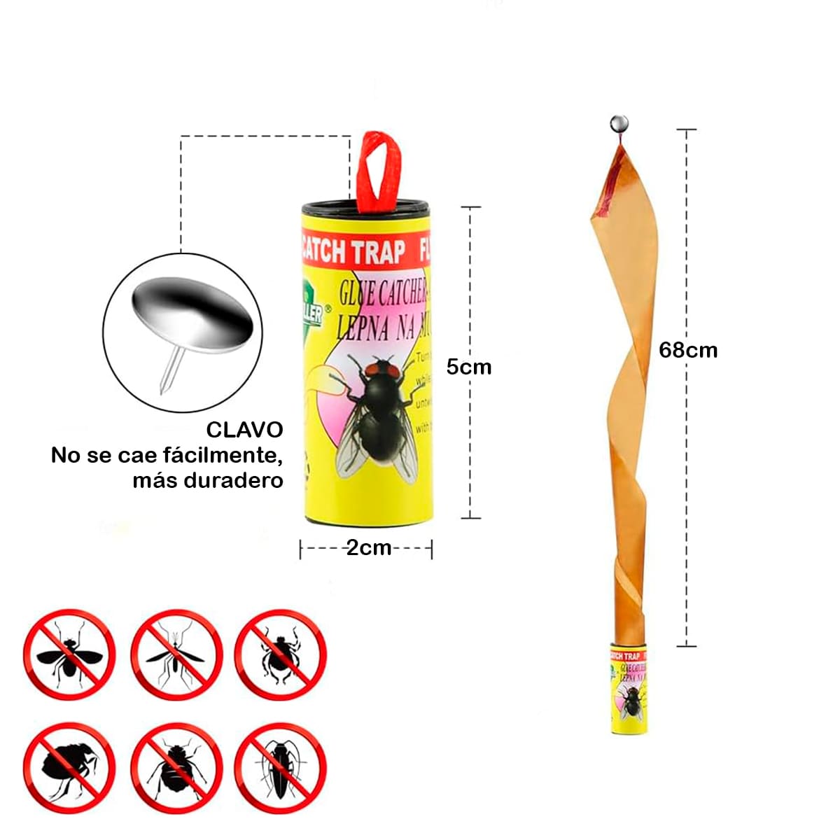 La cinta recubierta tiene un adhesivo especial que atrapa el insecto al posarse. No hay escape. No se necesita veneno ni pulverizadores. Es una trampa física.